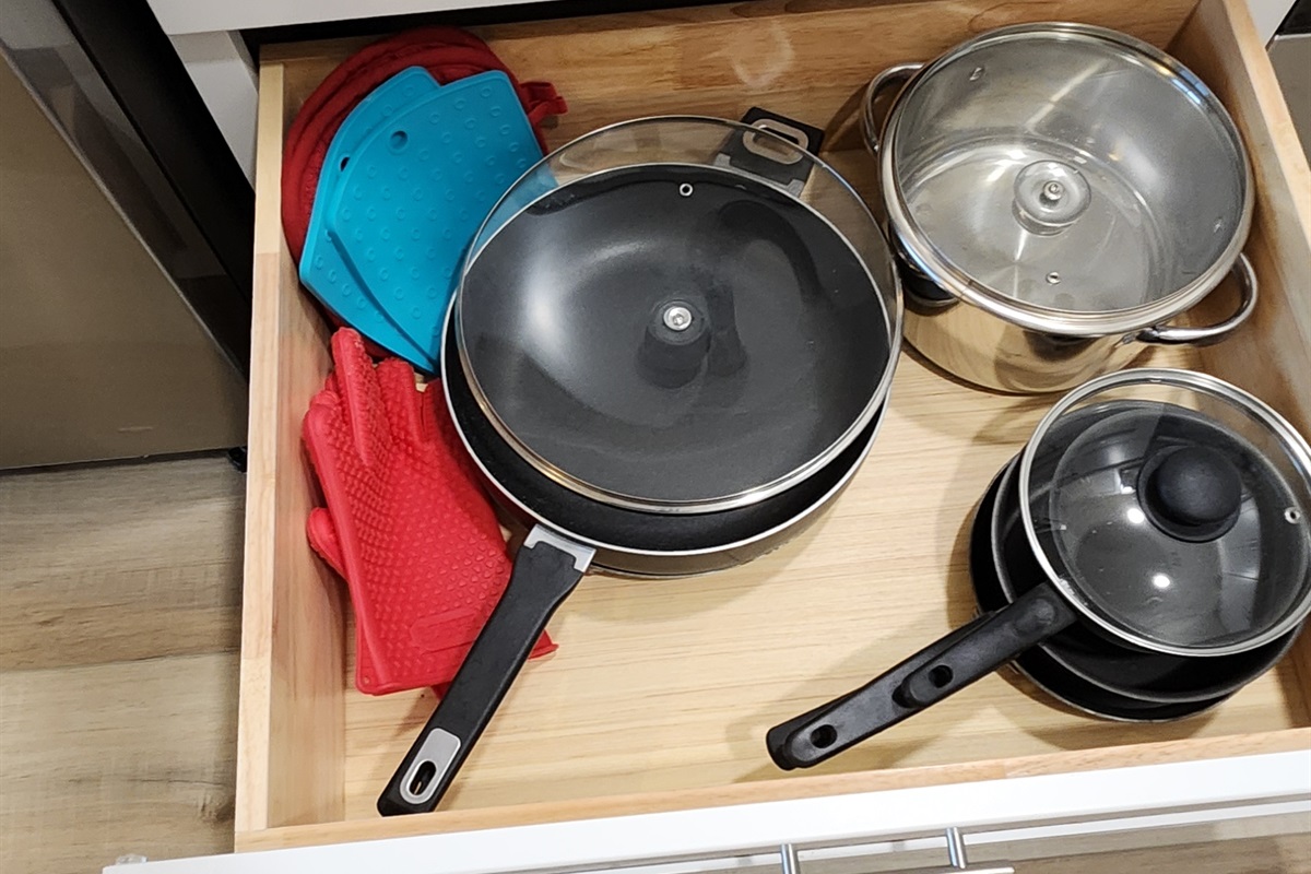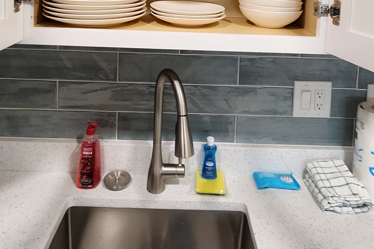 The brand-new kitchen features modern cabinetry, stainless steel appliances, and everything needed to prepare meals comfortably.