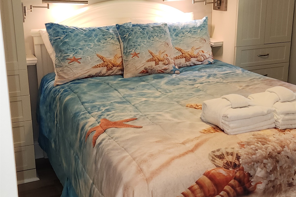 The private bedroom offers a relaxing environment designed for restful sleep and convenience.